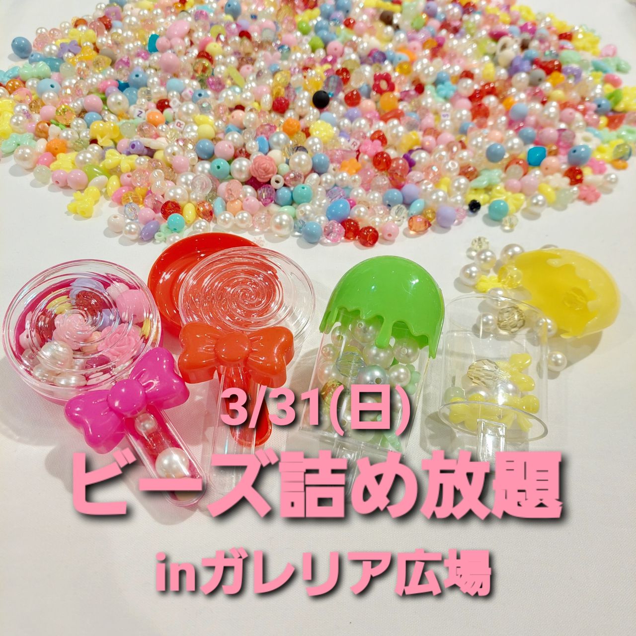 3/31(日)にガレリア広場で行われるスペシャルイベントにて、マーノクレアールは『ビーズ詰め放題』を開催します!!