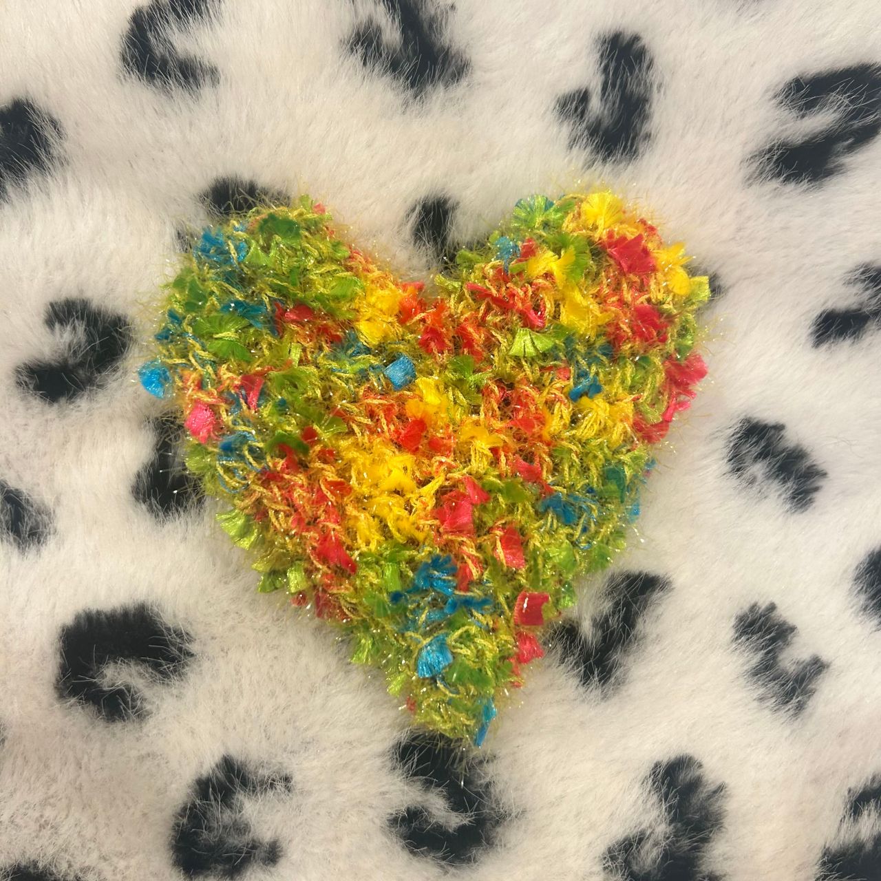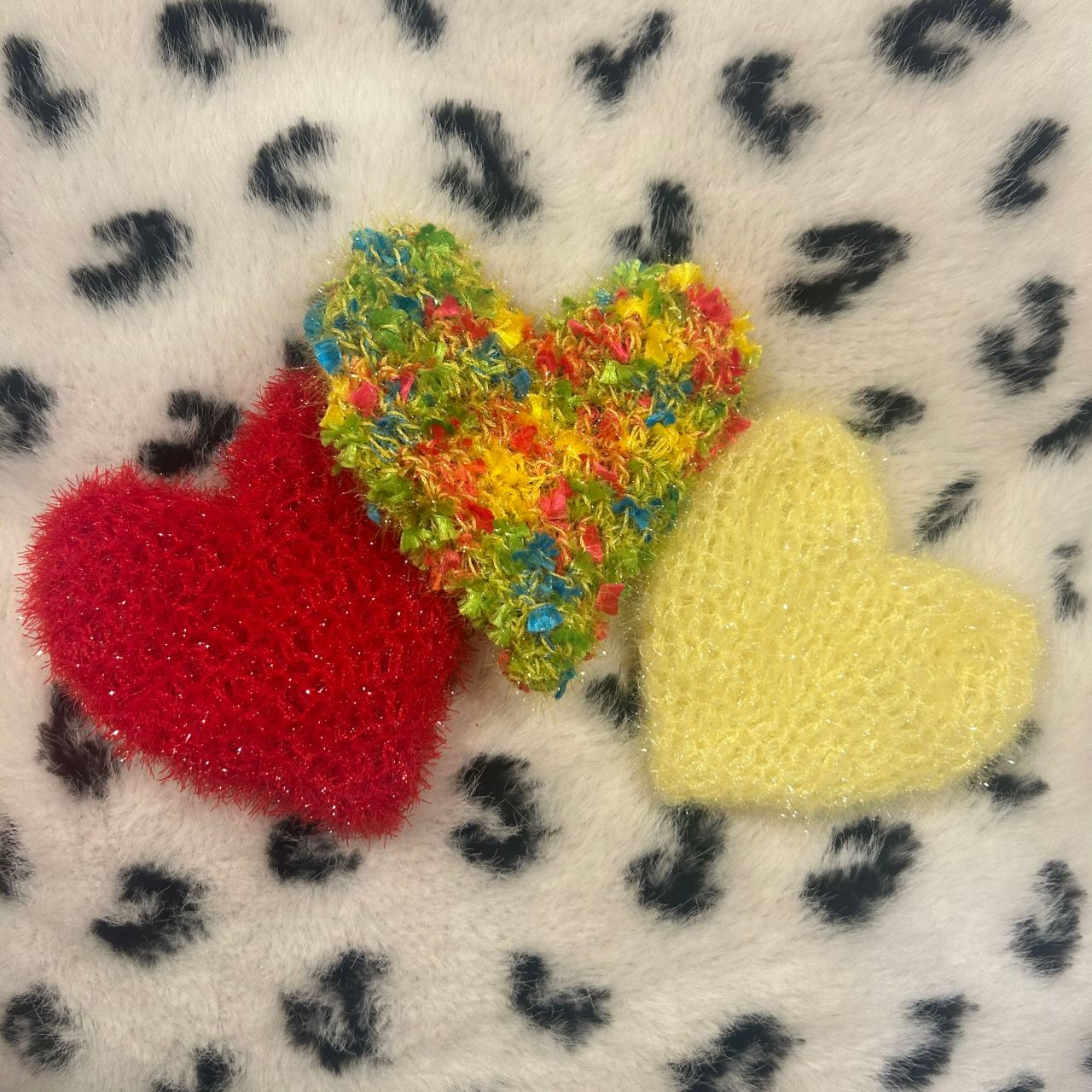 黄色を一玉買って、かなり適当に記憶を頼りにハートのエコたわしを編んでみました。6/0号のかぎ針を使いました。