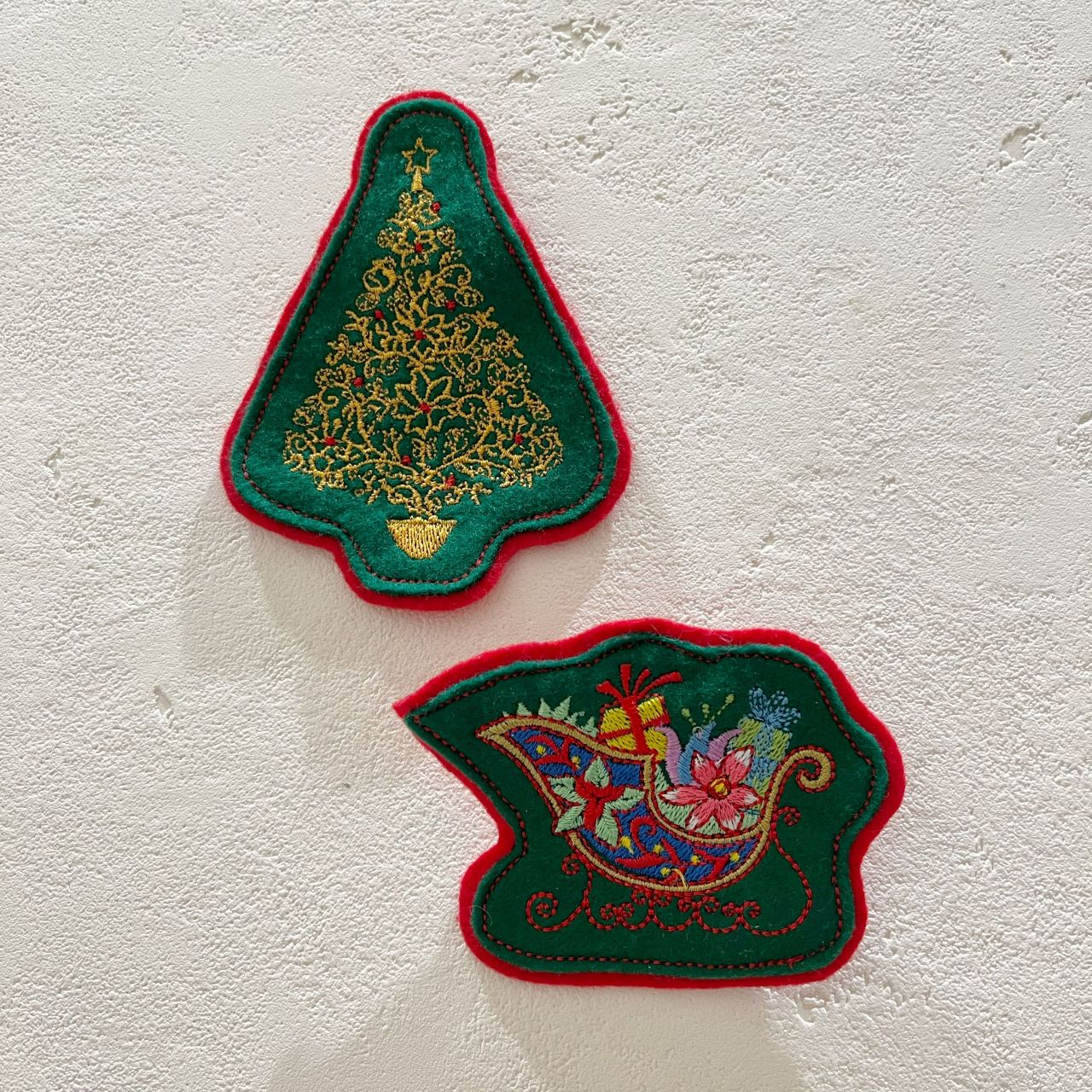 先日、専任スタッフが刺繍ミシンパリエを使ってクリスマス柄の刺繍のブローチをスタッフ分作ってくれました♪皆でエプロンに付けております!