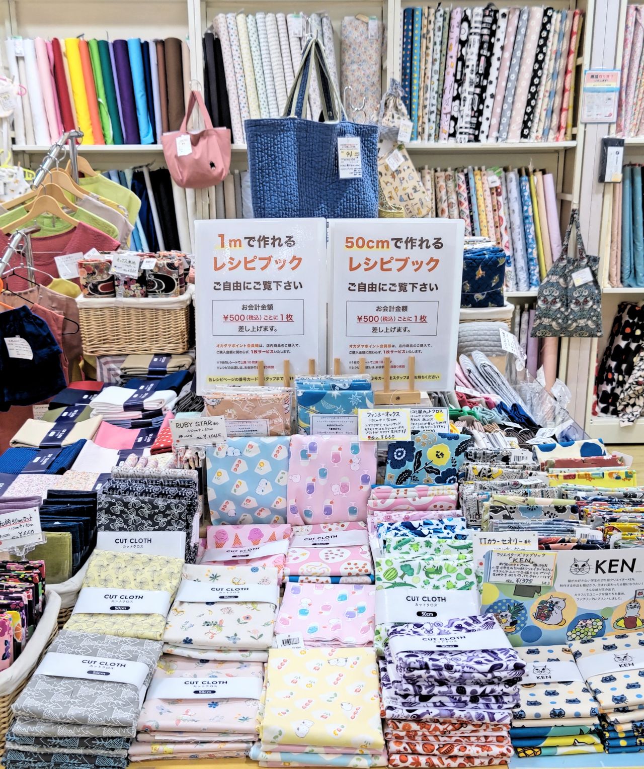 店内では新しく1mカットクロス、50cmカットクロスで作れるレシピブックをカットクロスコーナーに設置しました!
