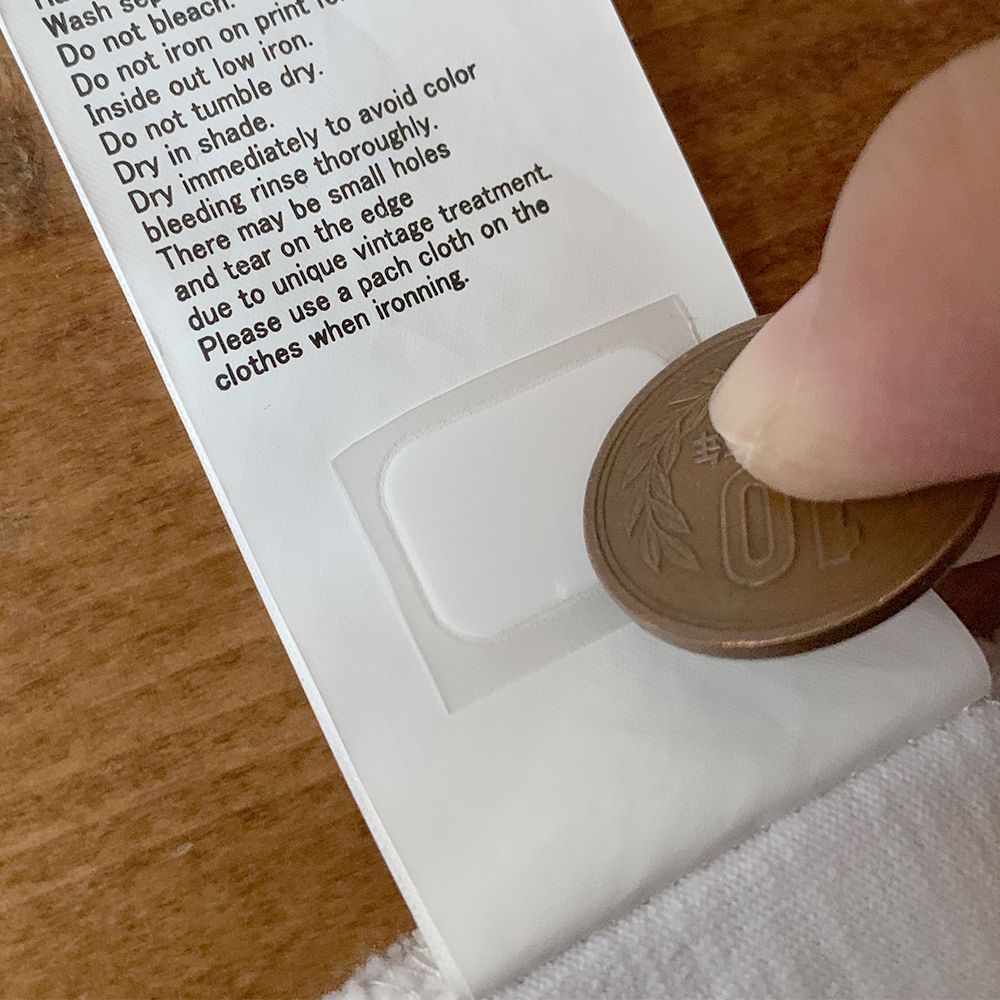アイロンで貼るのではなく、貼りたい場所にシールを置いてコインでこすって転写するんです。