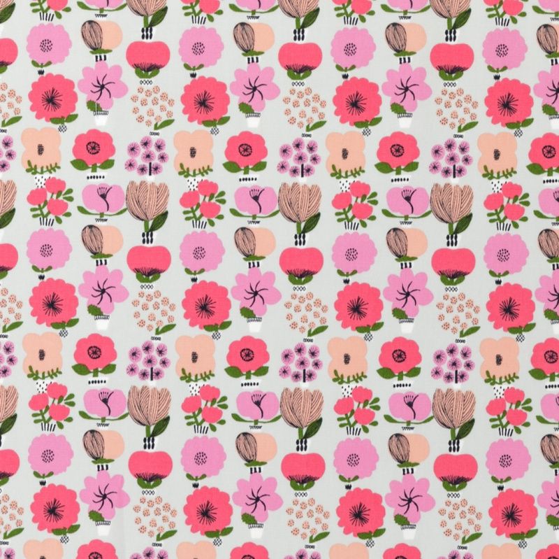 ガーデニングで使われるフェンスをモチーフに、有機的な花とグリッド模様を組み合わせた柄です。