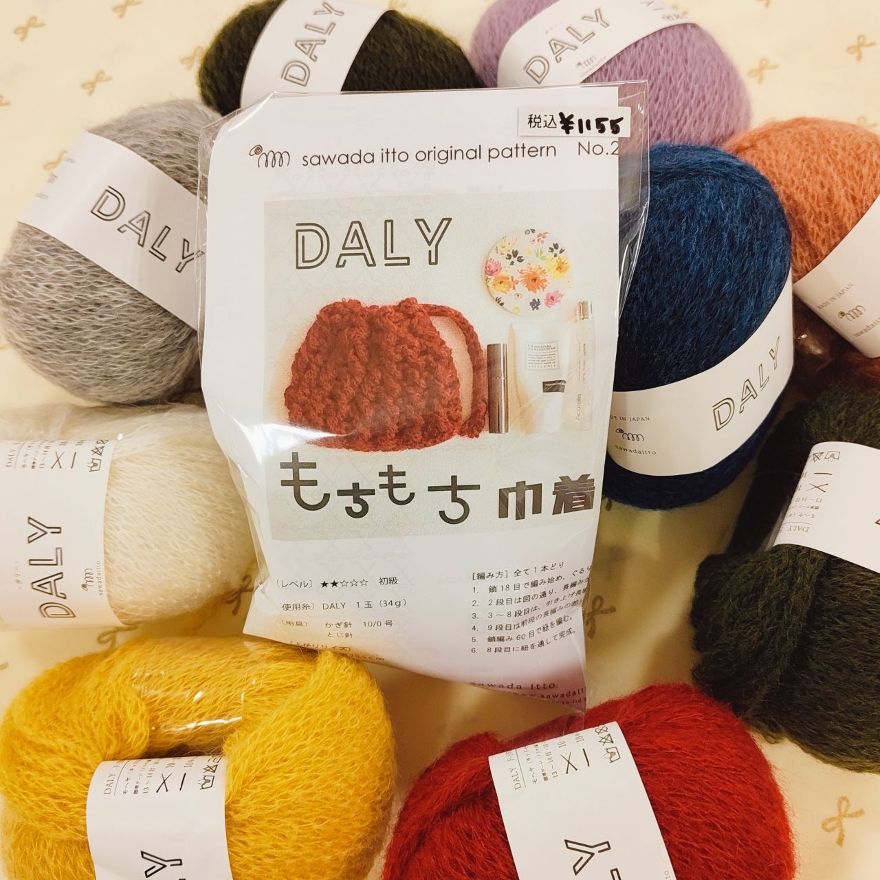 DALY(ダリー)1玉で編めるミニサイズの巾着キットで可愛い編地が特徴です。
