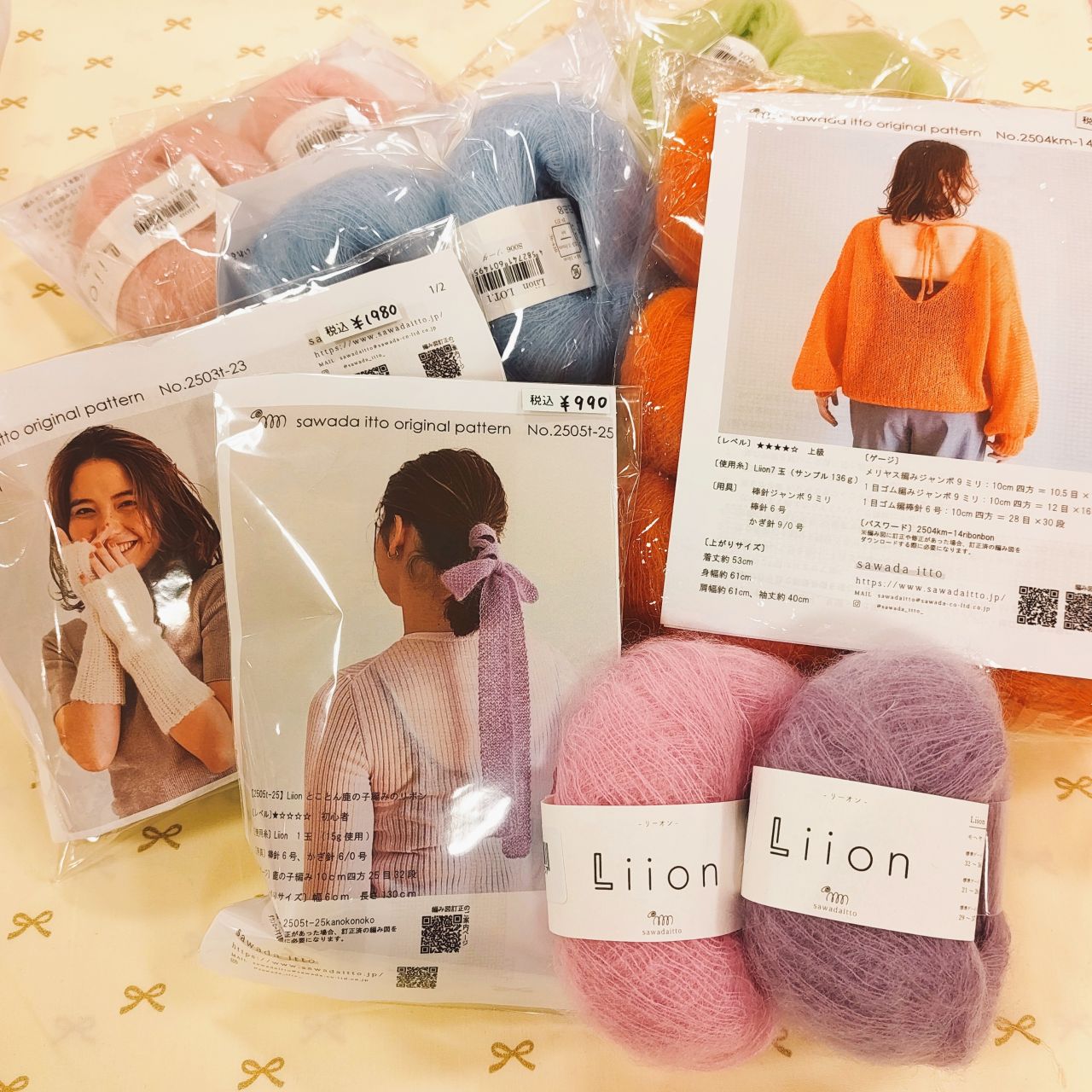 POP UP SHOPでは新作モヘア糸 Liionのキットなど、当店の普段のお取り扱いには無いsawada ittoの新しいラインナップにも出会えます☆さっそくオススメのキットからご紹介いたします↓