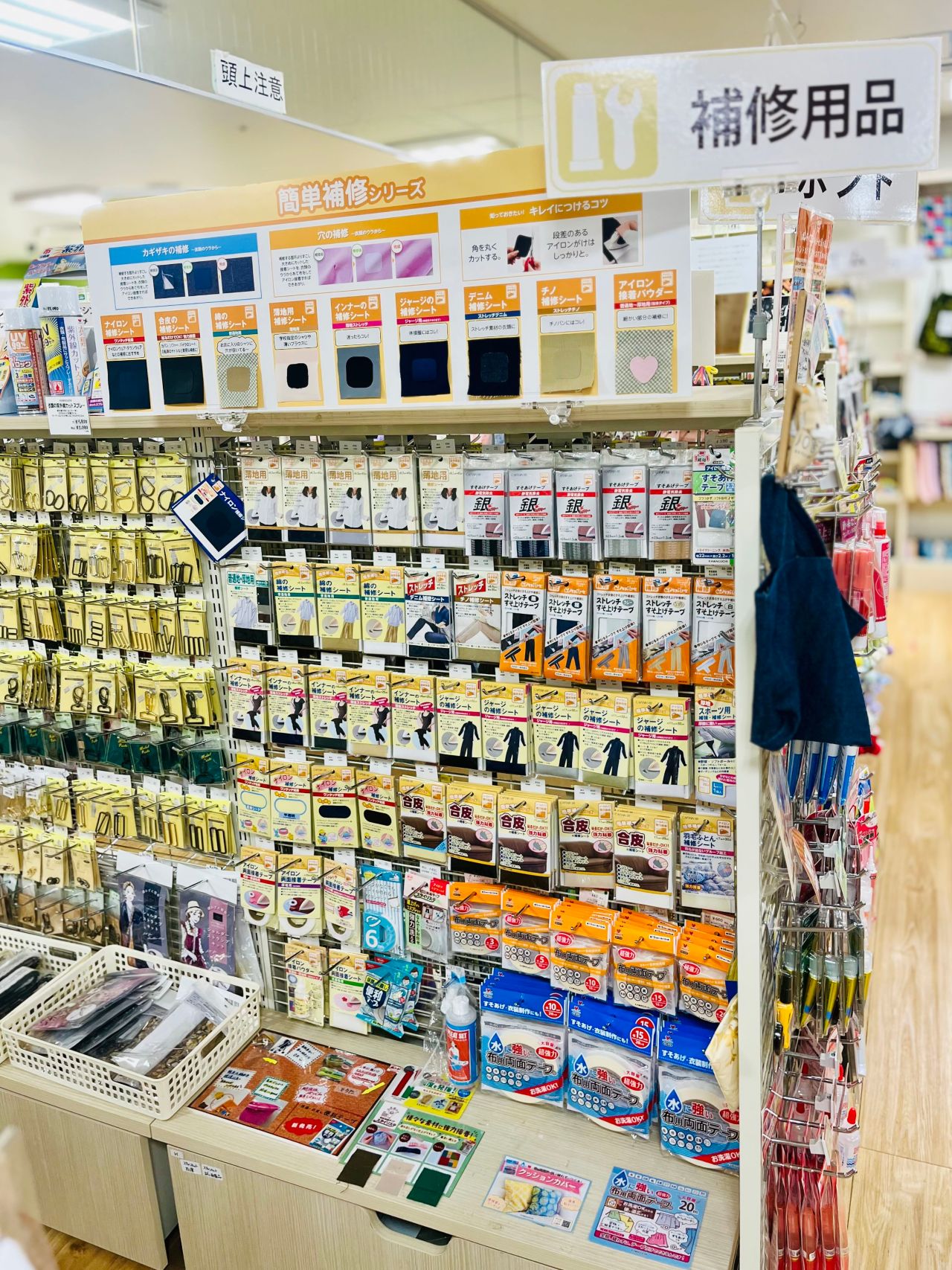 ナイロン補修シートはこちらの補修用品コーナーにございます。