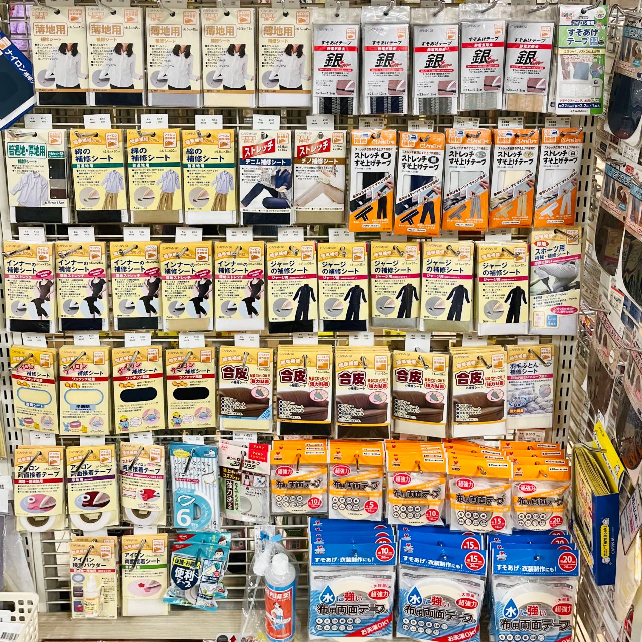 当店でお問合せの多い、アイロンで簡単にできるすそあげテープもこちらのコーナーにございます。