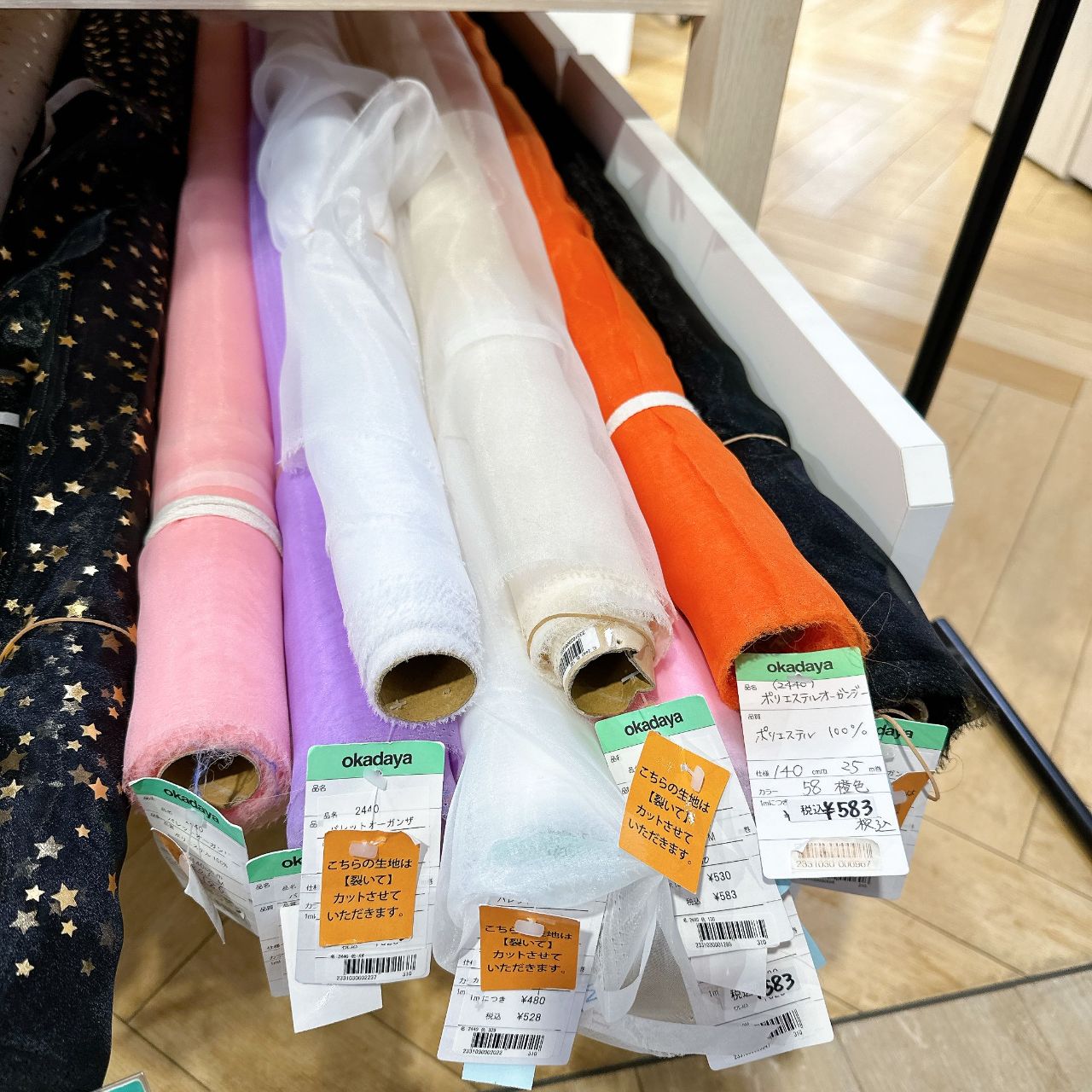 ハロウィンに向けてワクワクするかわいいプリント柄の生地や、衣装作りにぴったりのサテン生地やオーガンジー、チュールを集めました!
