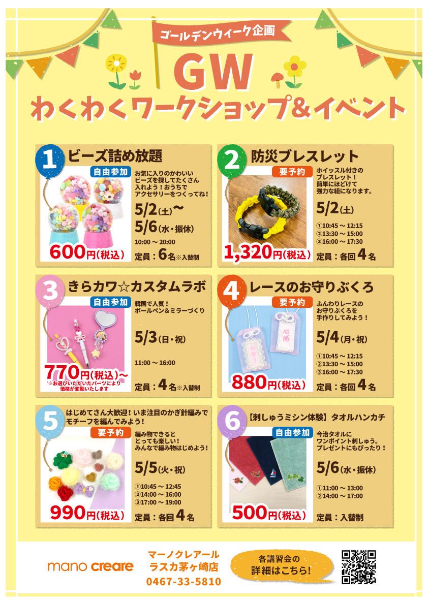 【ラスカ茅ヶ崎】GWわくわくワークショップのお知らせ