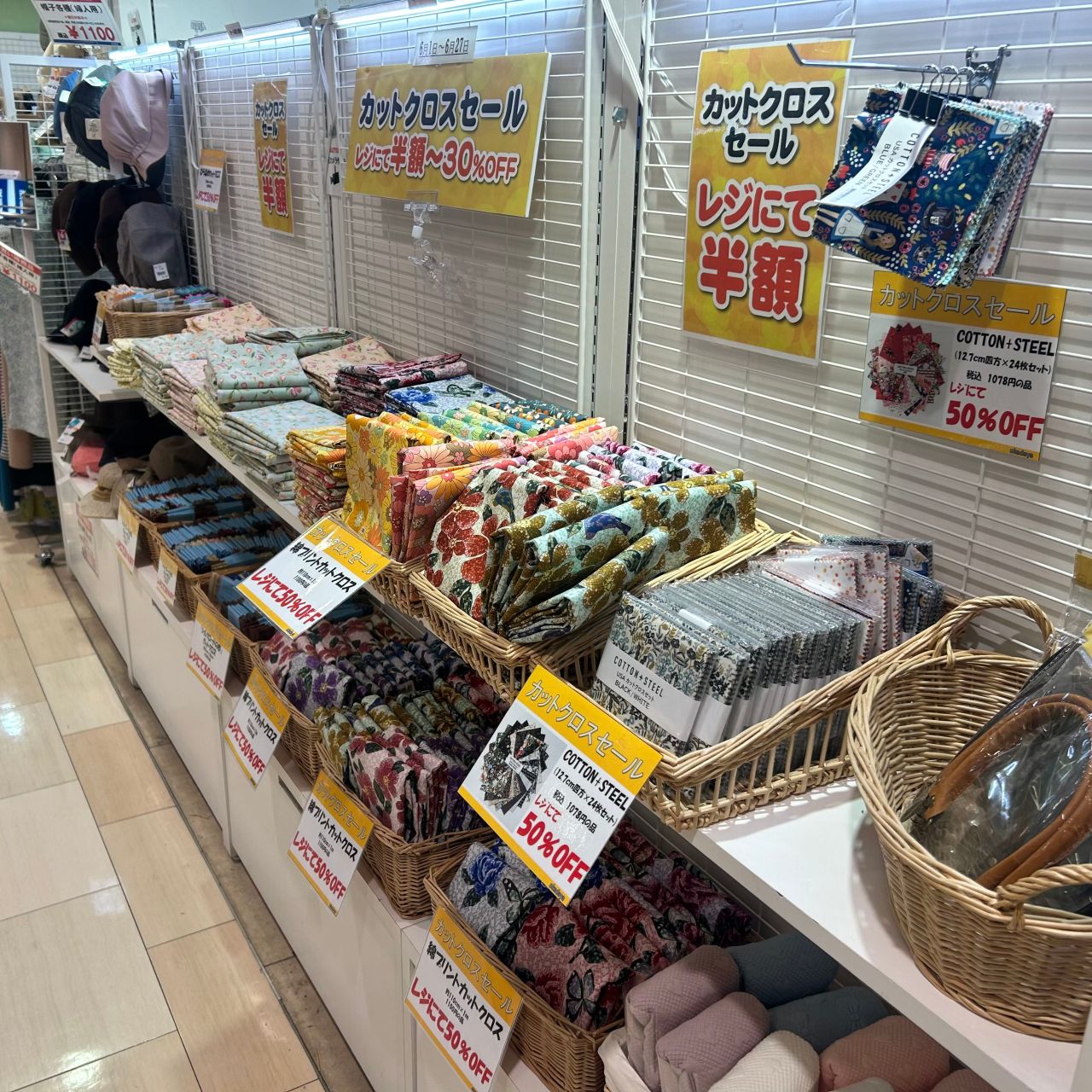 パッチワーク用カットクロスや、1m(プリント生地)カットクロスが30~最大50%OFF!