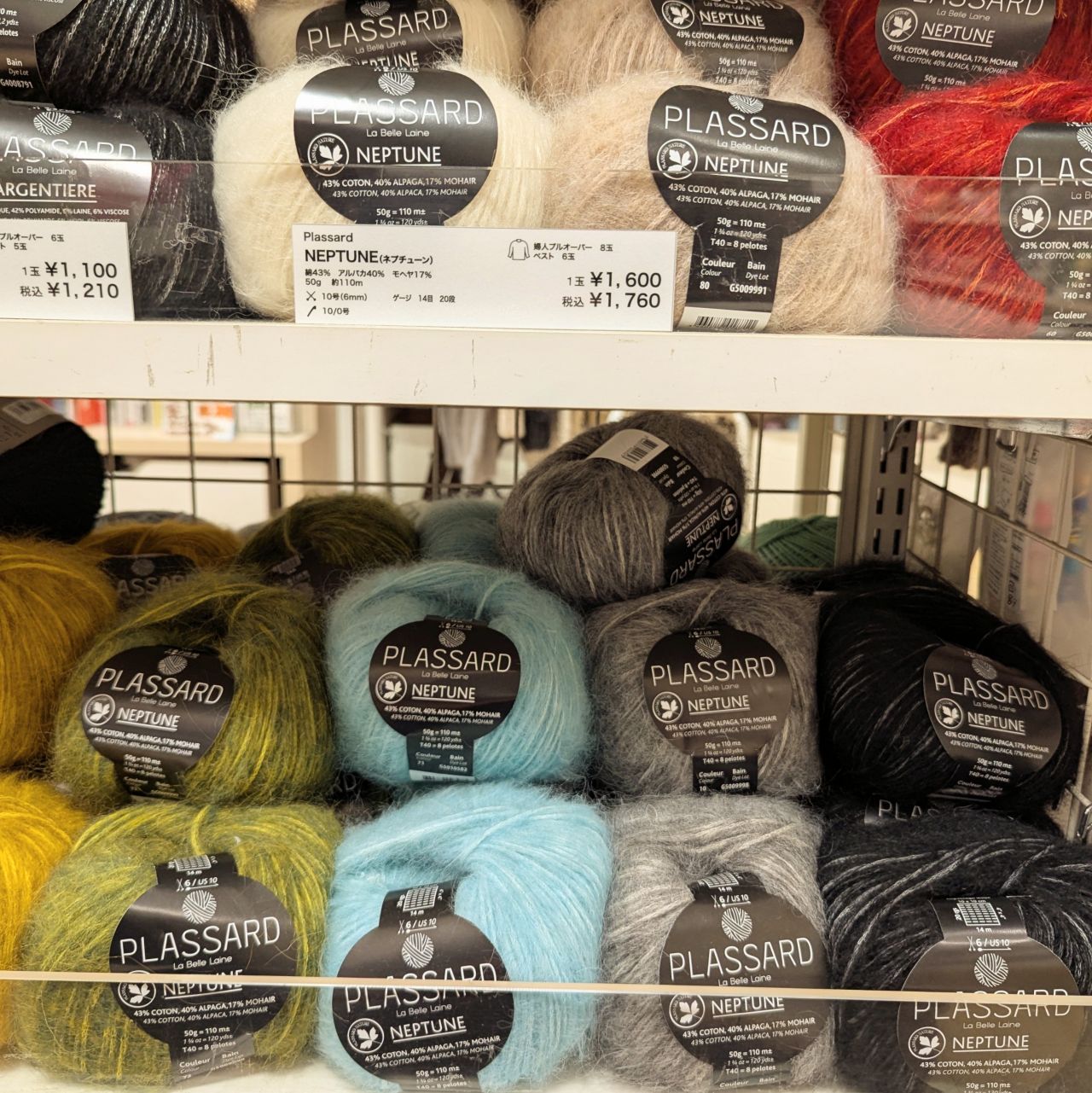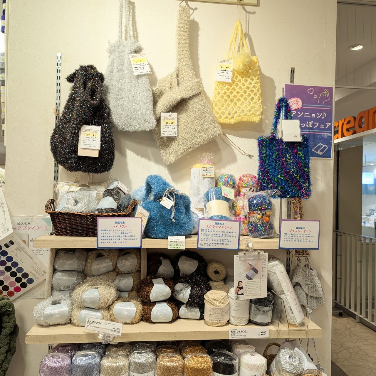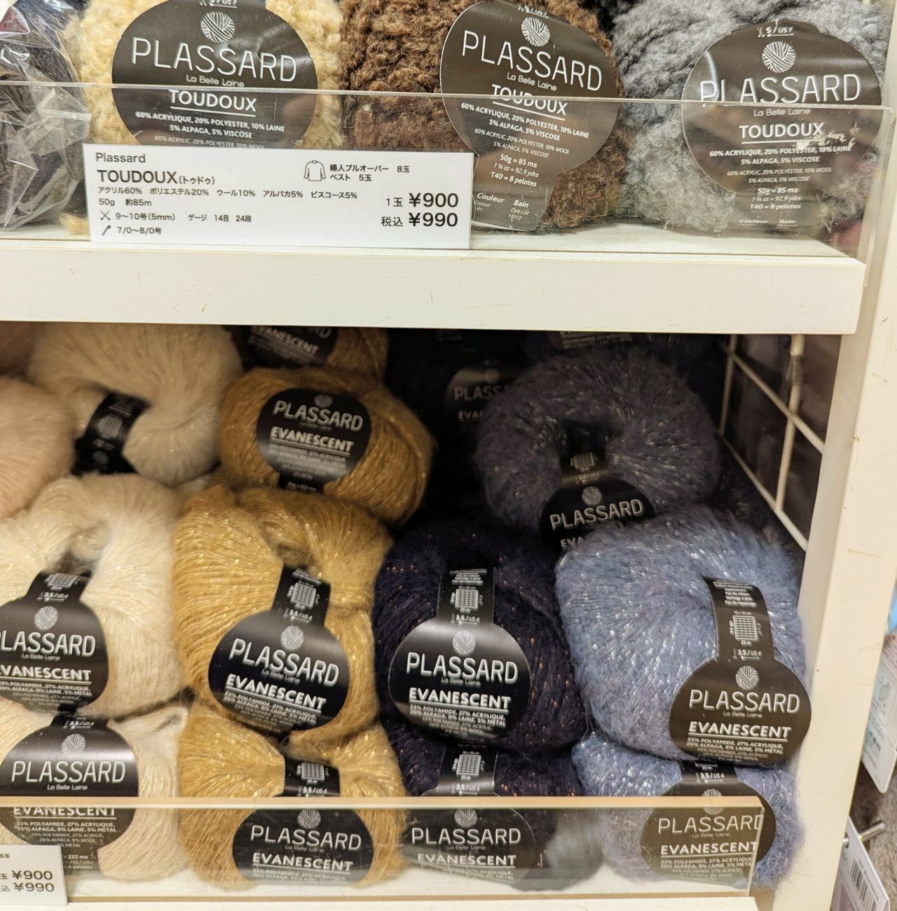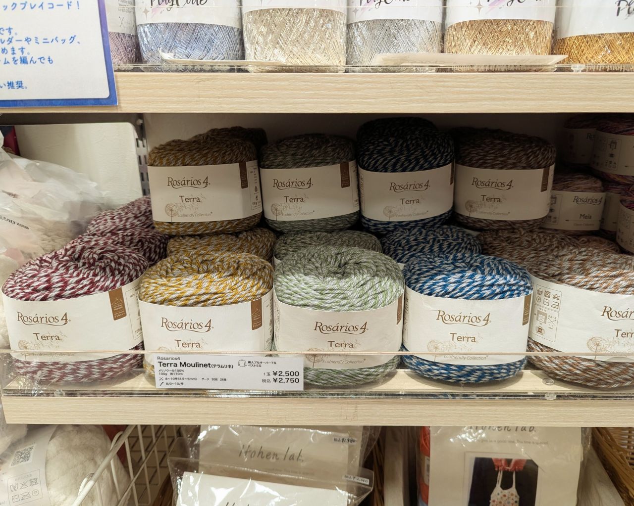 Opal毛糸の奥に輸入毛糸が並べてあります。