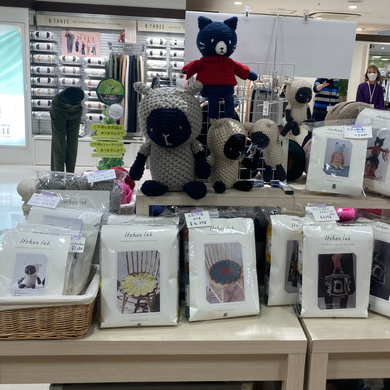 店頭には、編みたくなること間違いなしの編みものキットが勢ぞろいしております。