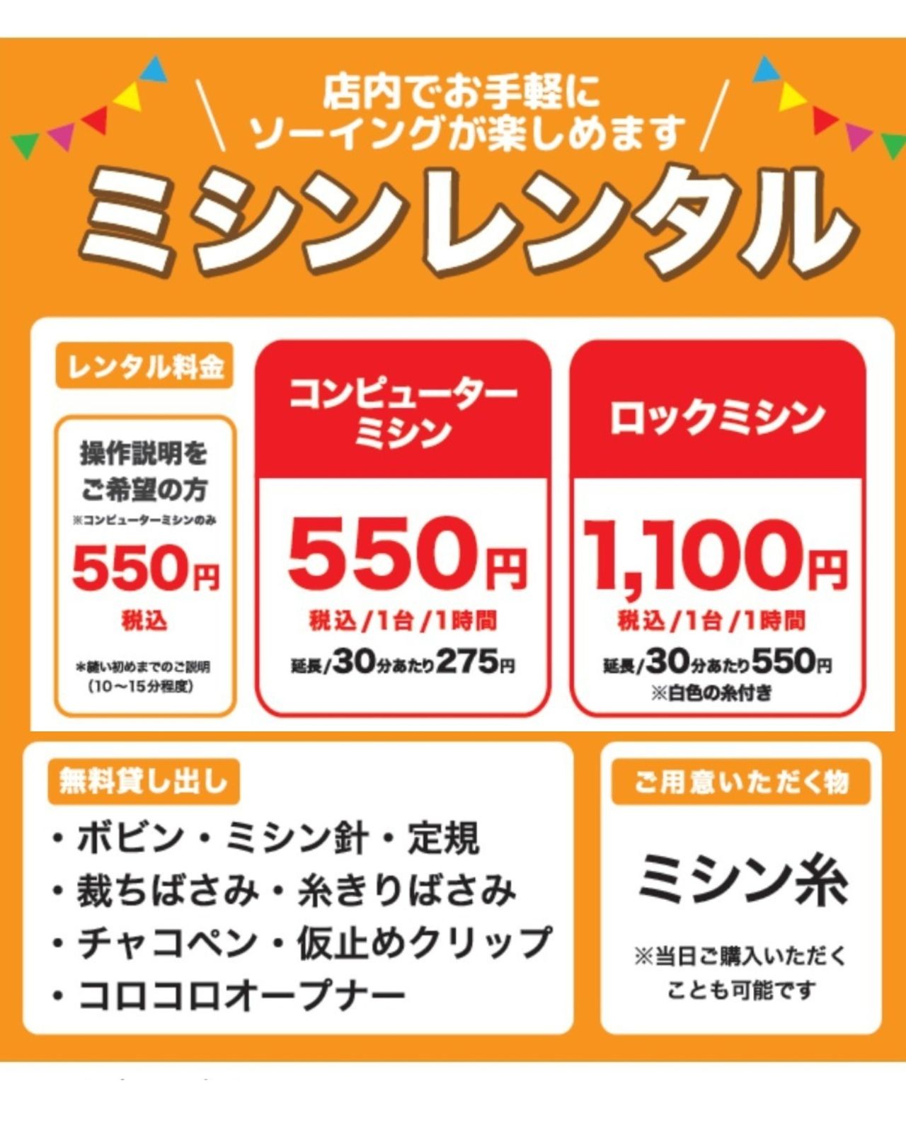 【武蔵小杉店】レンタルミシンご存知ですか?