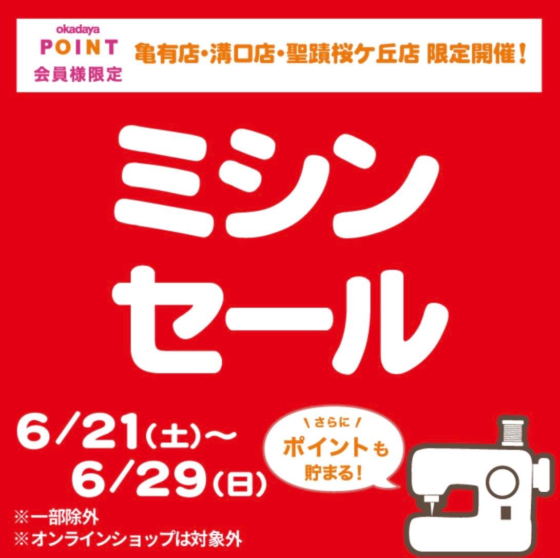 オカダヤポイント会員様限定で、対象のミシンが特別価格!