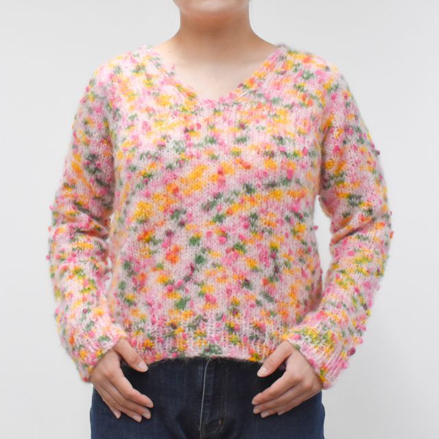 そしてなによりも色とりどりのネップが映える、お花畑みたいな編み地がとってもかわいい!