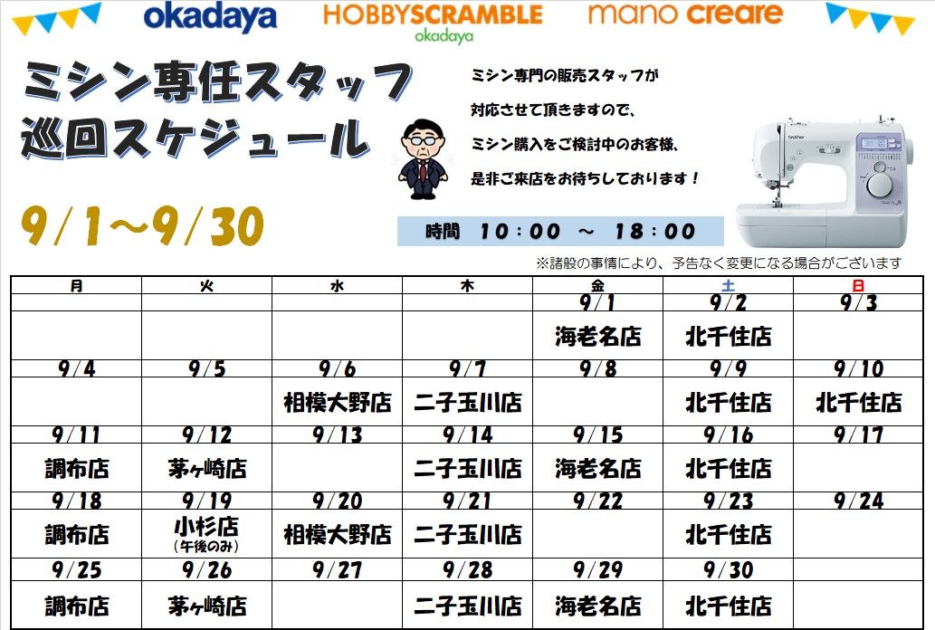 ミシン専任の販売スタッフが店舗を巡回しております。