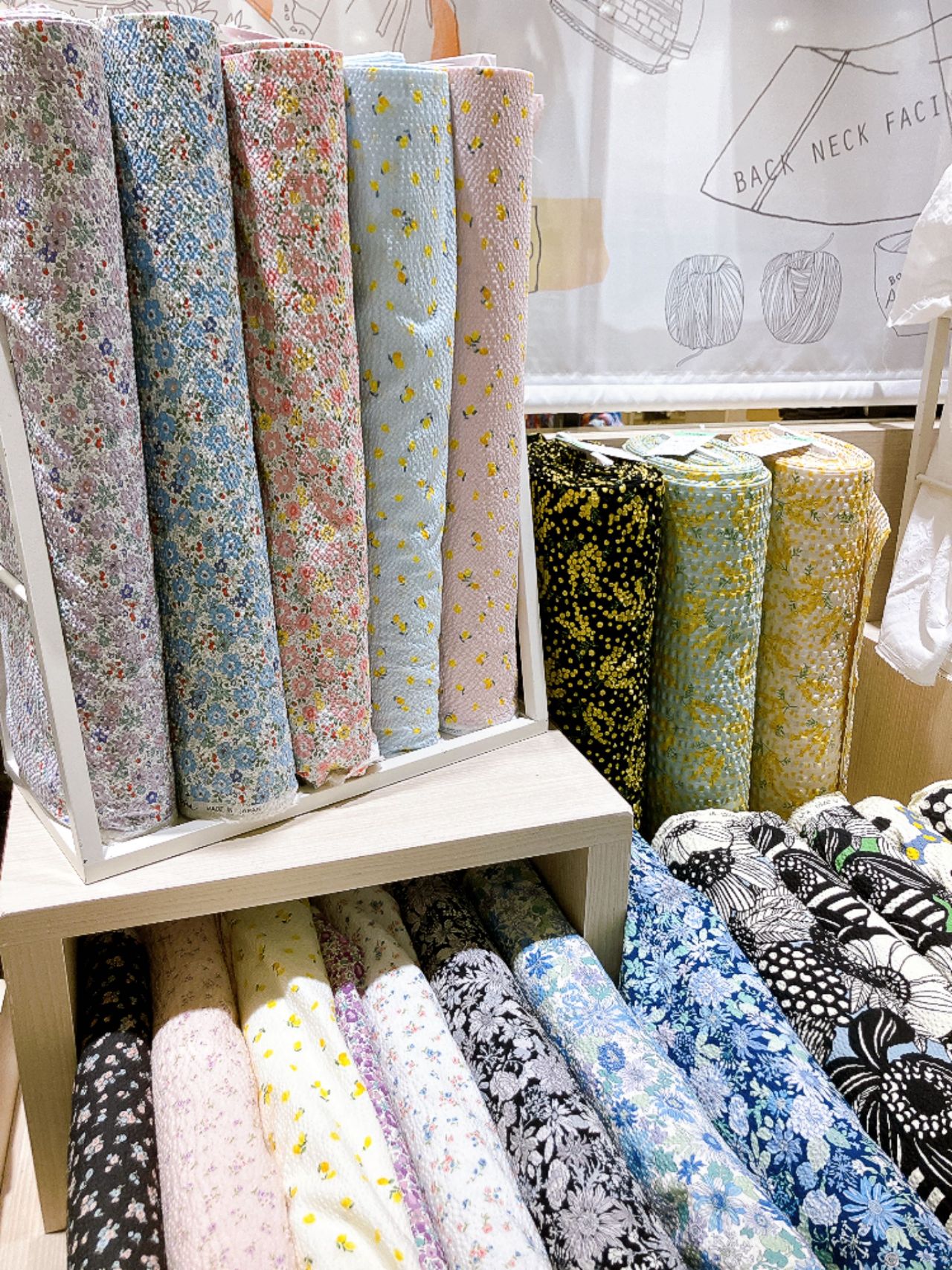 ローン、レース生地、リップルやサッカーの涼しい着心地のお洋服作りにぴったりの生地がたくさん入荷しています。