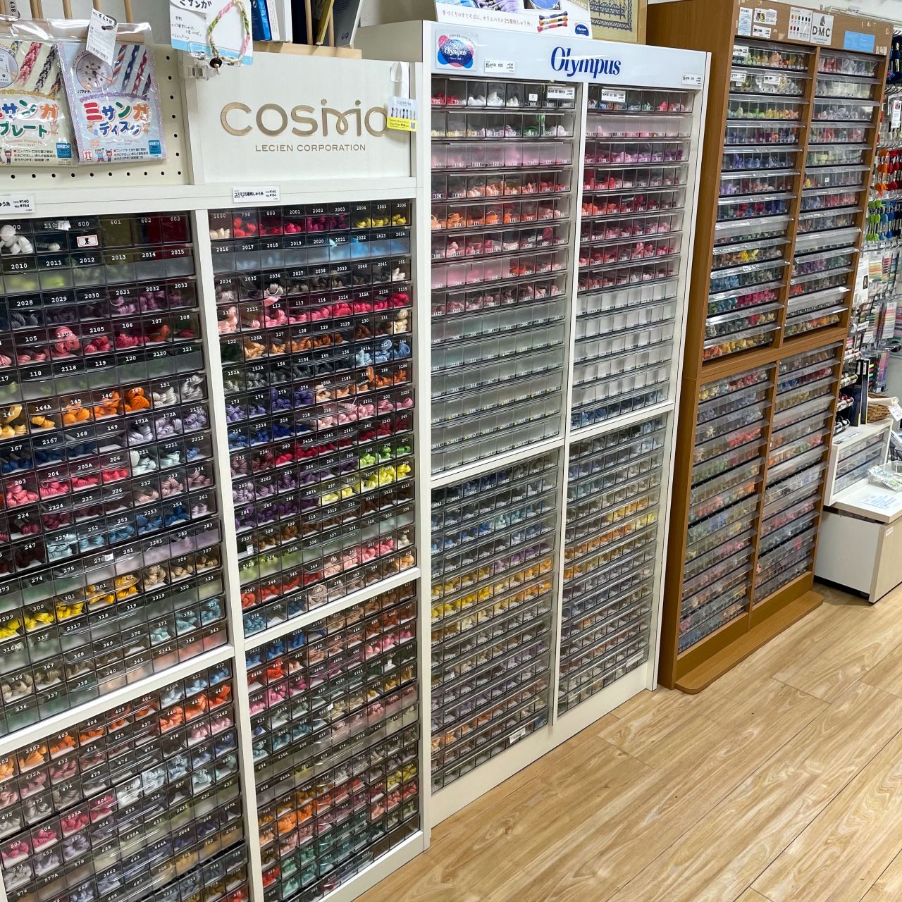 後ろは刺繍糸の棚になりますのでフェルトの色に合わせてすぐに糸選びができます。