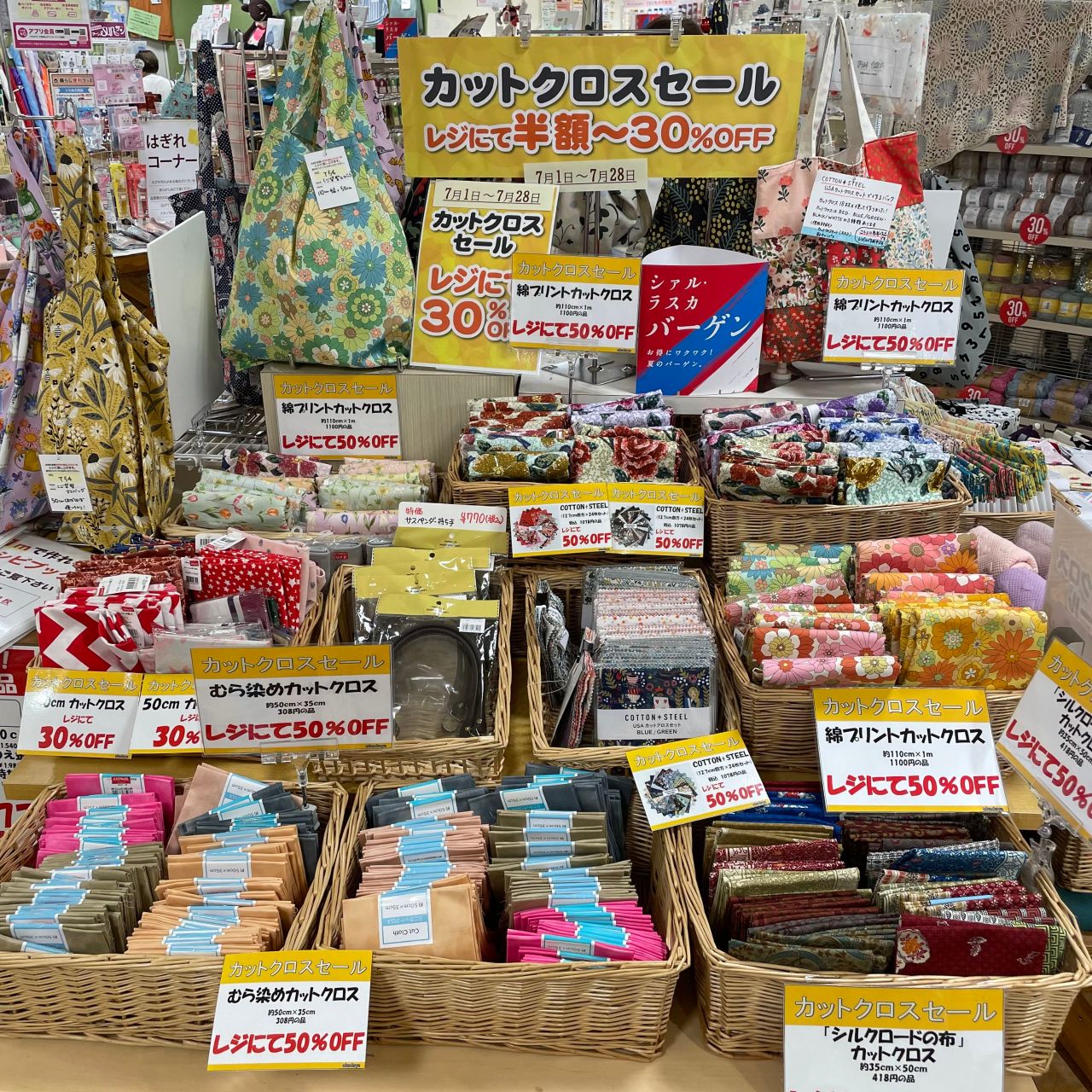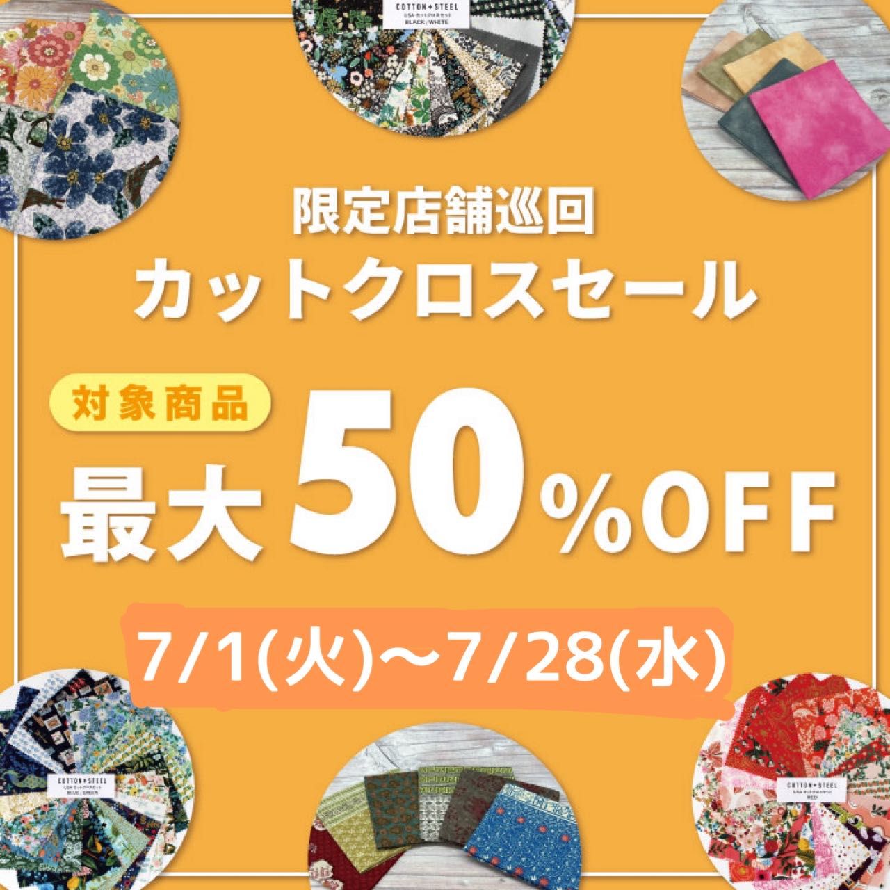 パッチワーク用カットクロスや、1m(プリント生地)カットクロスが30%~最大50%OFF!