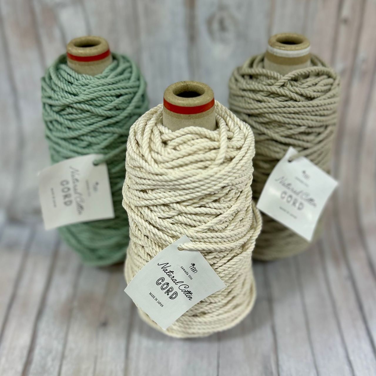 コットンの細い糸を20本撚糸しており、太さは約3.5mmになります。
