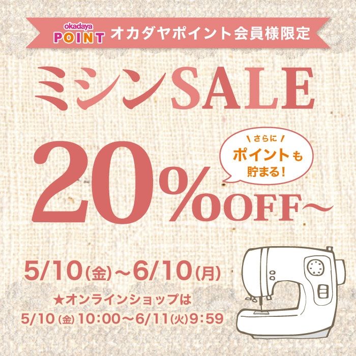 家庭用ミシン、職業用ミシン、ロックミシンなど幅広くご用意しております。