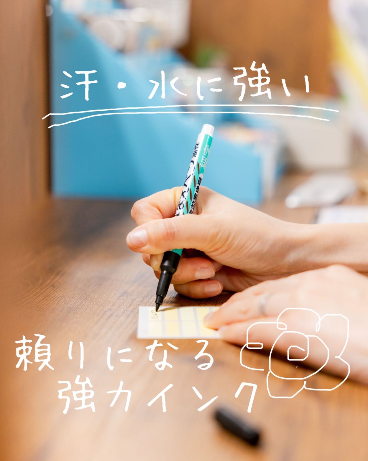 汗や水にもにじまない強カインクが特徴の名前書き用のペン!