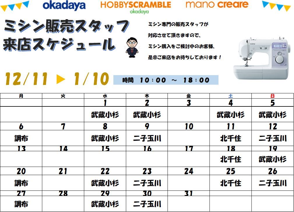 新宿本店・町田店・溝口店・亀有店・ノースポートモール店・聖蹟桜ヶ丘店には、常設のミシンコーナーに専任の販売スタッフがおります。