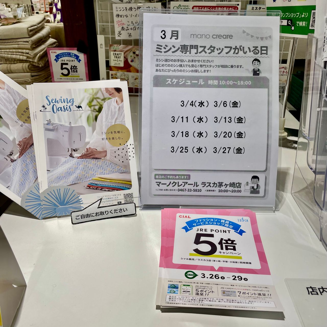 【ラスカ茅ヶ崎店】おすすめミシンとJREポイント5倍のお知らせ