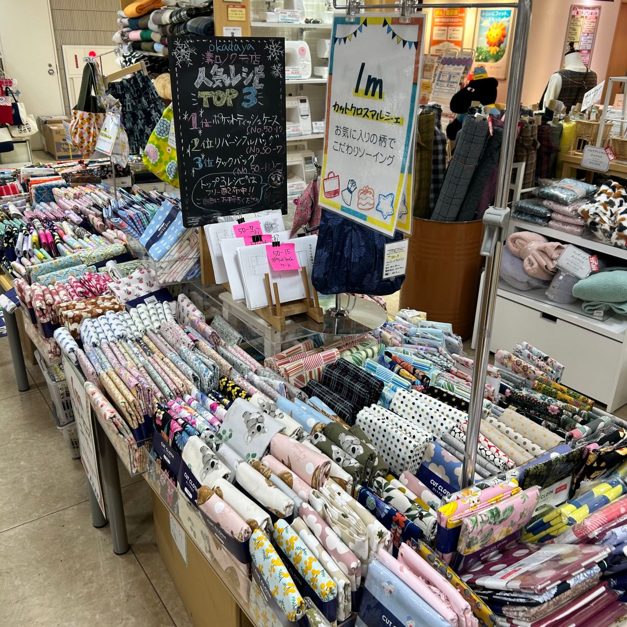 ぜひゆっくり店内ご覧になりながら、お気に入りのカットクロスを見つけてみてくださいね♪