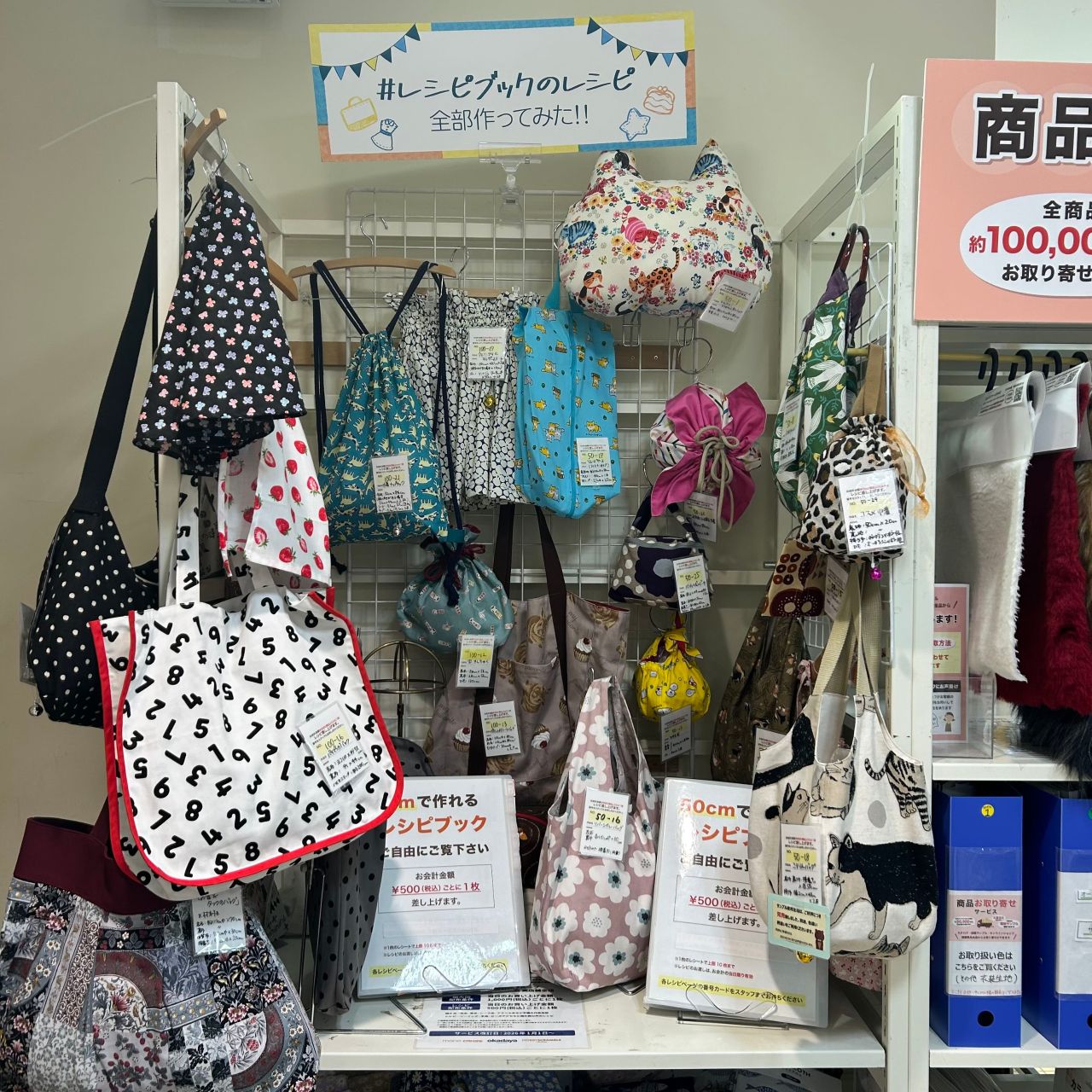 また、店内奥にはカットクロスの作品が大集合している、「#レシピブックのレシピぜんぶつくってみた」のコーナーもございます♪