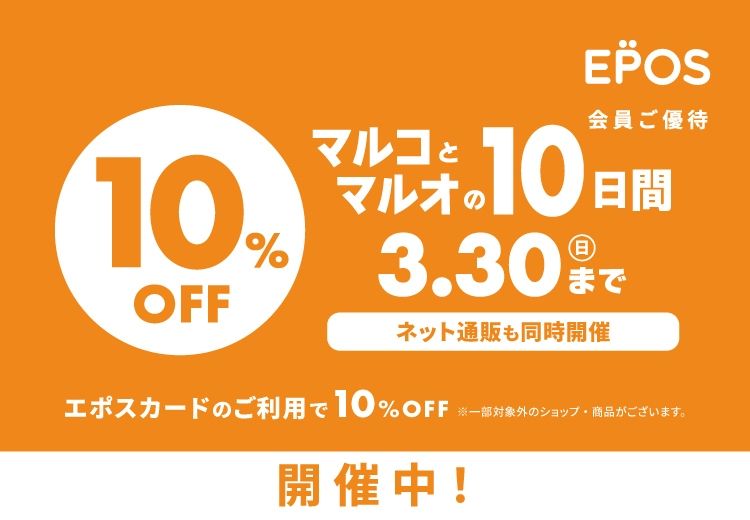期間中はエポスカードのお支払いで10%オフ!3/30(日)までです。