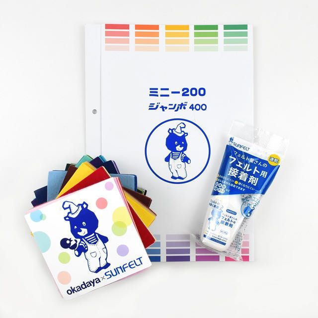 ミニーフェルト全色各1枚と、発売以来使い勝手の良さに大好評の「フェルト屋さんが作ったフェルト専用ボンド」、
