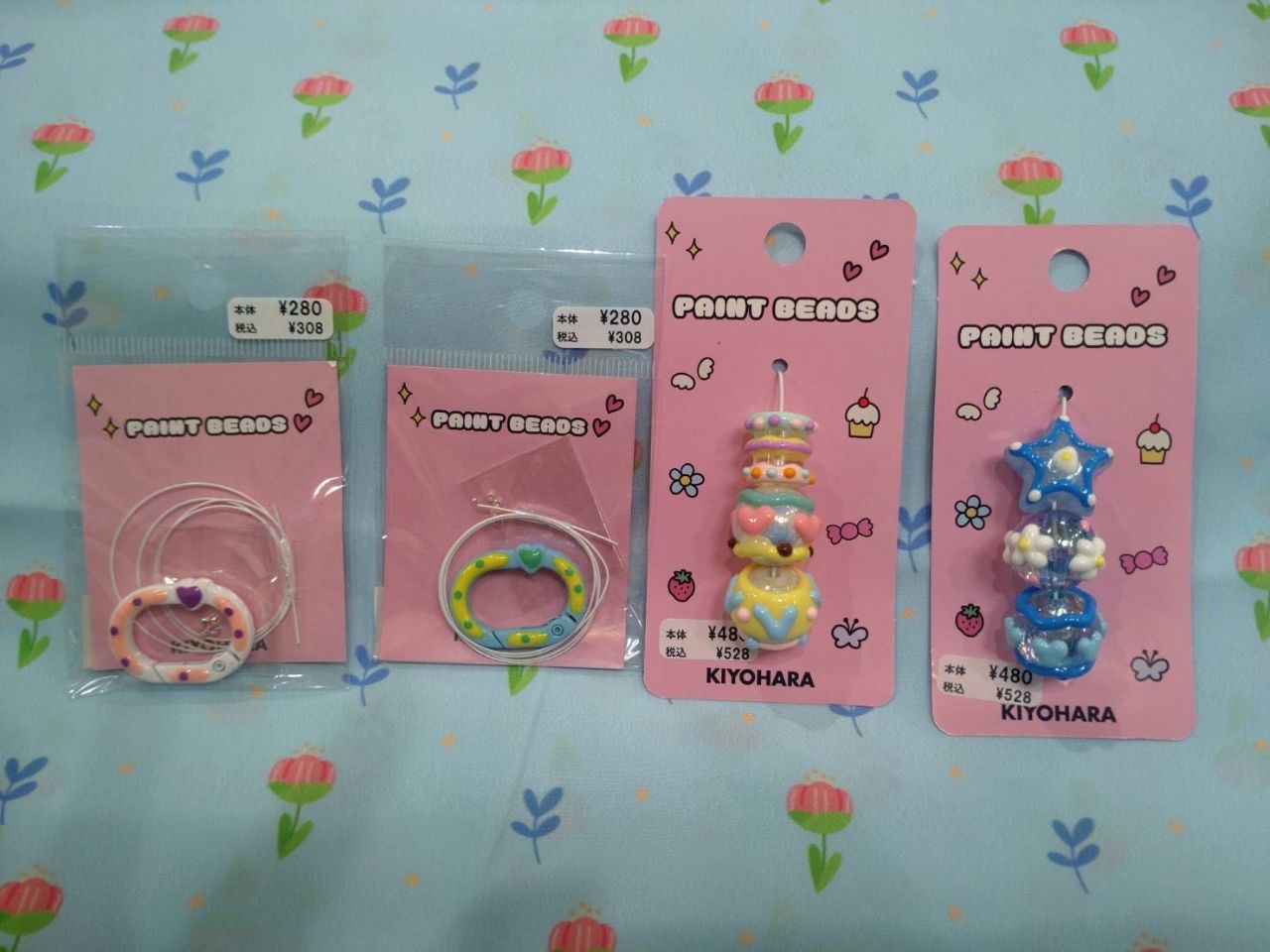 ぷっくりとしたカラフルなモチーフが特徴なビーズです♪珍しい柄がペイントしてあるカラビナもあります。