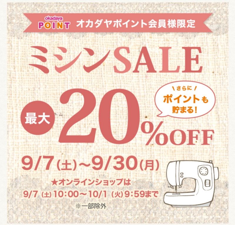 なお9/27(金)はミシン専任スタッフがおりますので、ミシンのお悩み、ご相談、質問、お試し縫いなどお伺い致します!