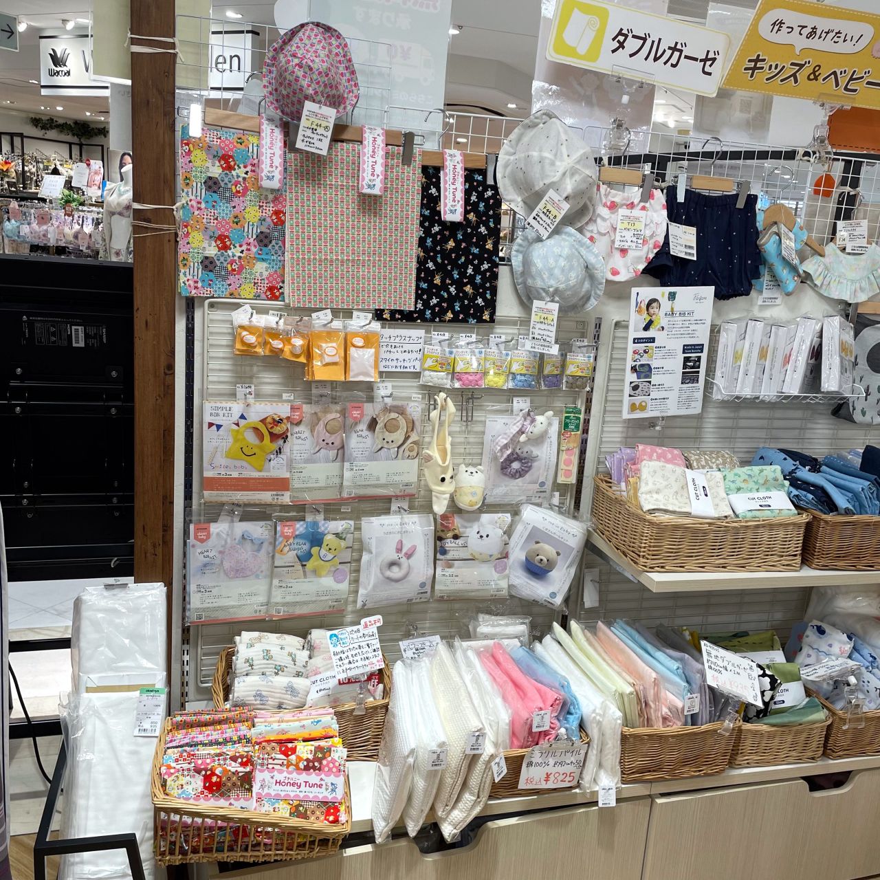 こちらのカットクロスはお店入り口すぐのベビーコーナーに置いてあります。