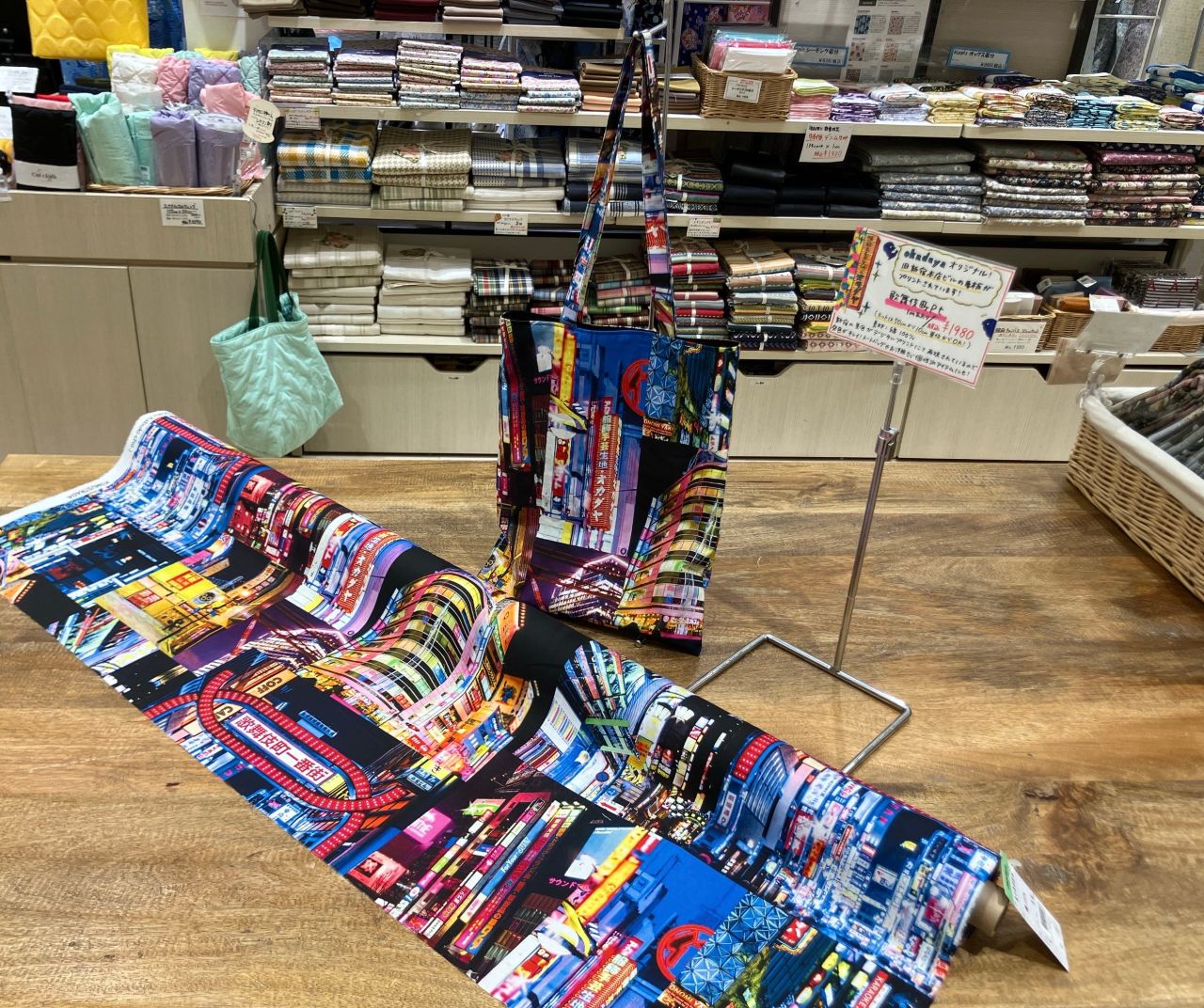 さすがオカダヤな生地が入荷したので、さっそくサンプルのトートバッグを作ってみました!