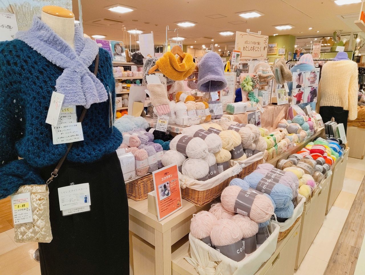 ふわふわモコモコ毛糸は編み目が揃っていなくても、仕上がりの差が気になりにくい点もおすすめのポイントです。ぜひ店頭でお手に取ってご覧くださいませ☆