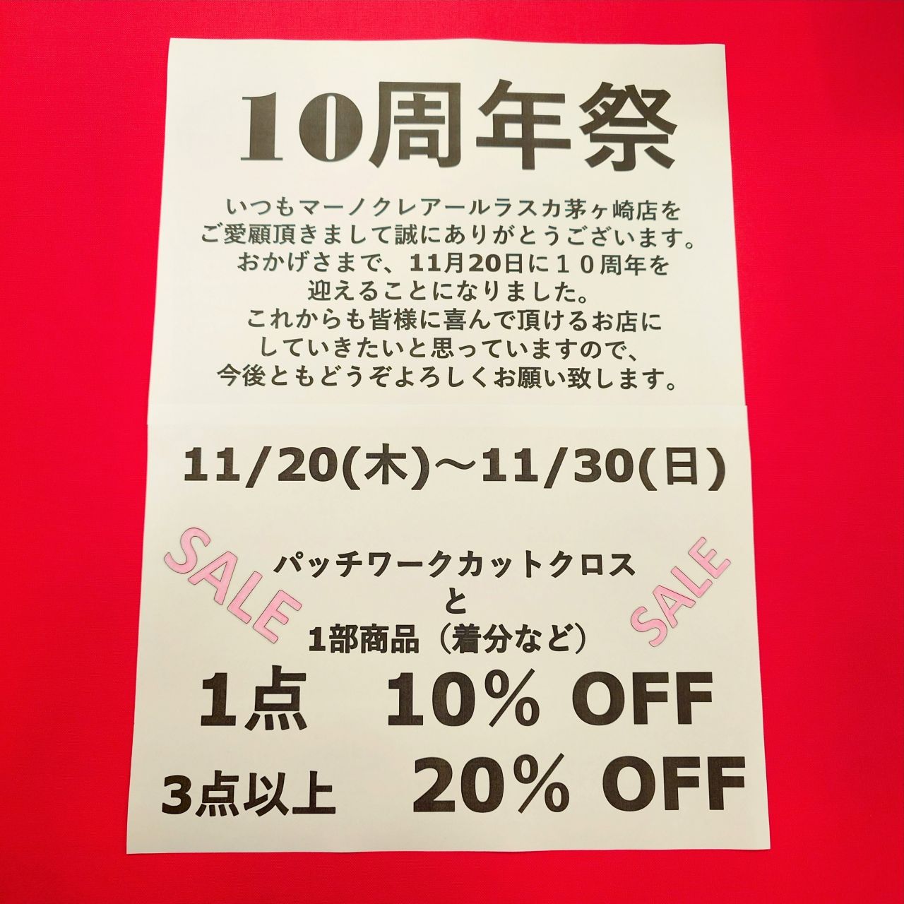 マーノクレアールラスカ茅ヶ崎店は、2025年11月20日でオープン10周年を迎えます。