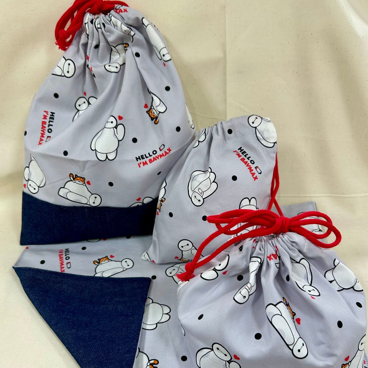 1Mで体操着入れ、ランチ3点セット(お弁当袋・コップ袋・ランチョンマット)のサンプルを作ってみました!
