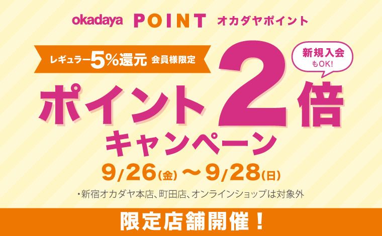 さらに、オカダヤグループ各店(本店・町田店・オンラインショップを除く)では、