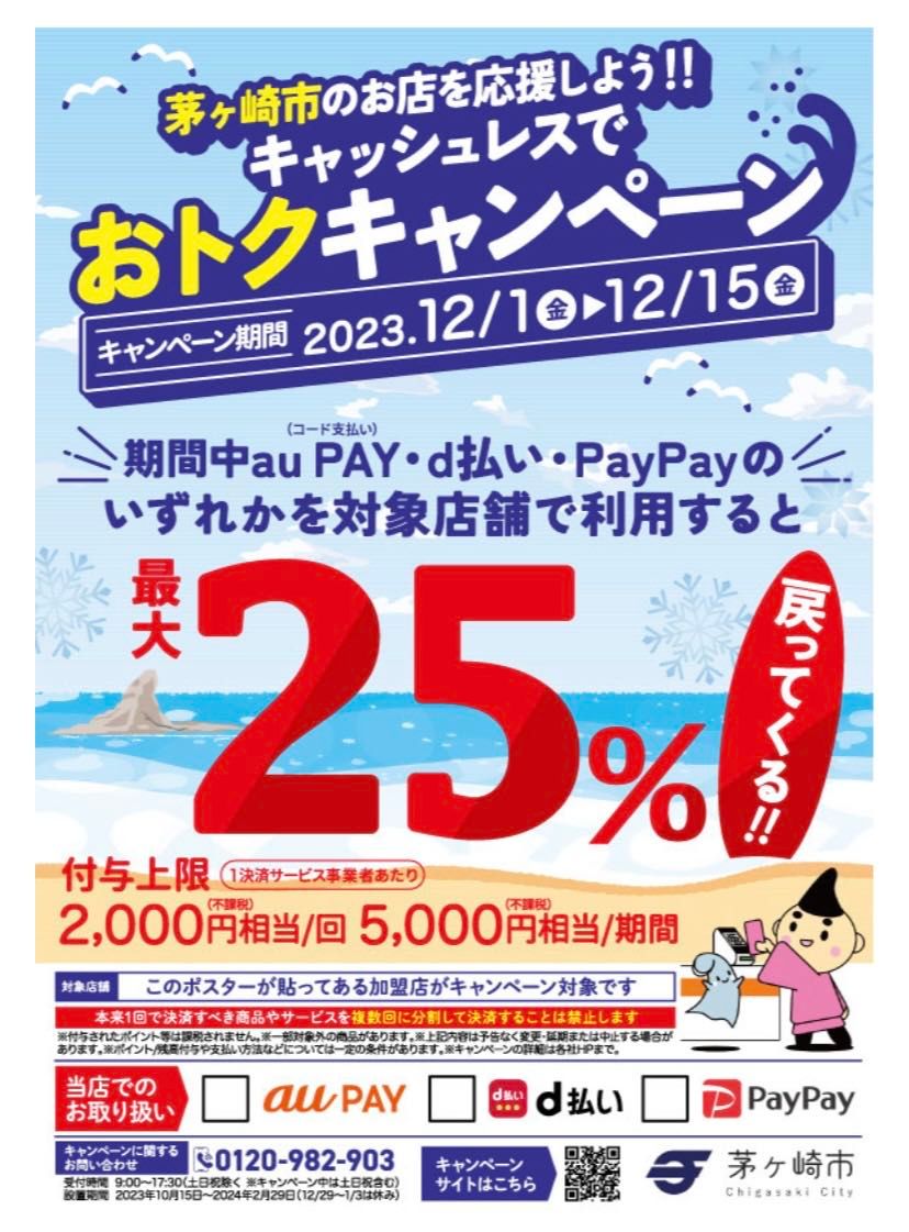 『茅ヶ崎のお店を応援しよう!!キャッシュレスでおトクキャンペーン』もスタート!