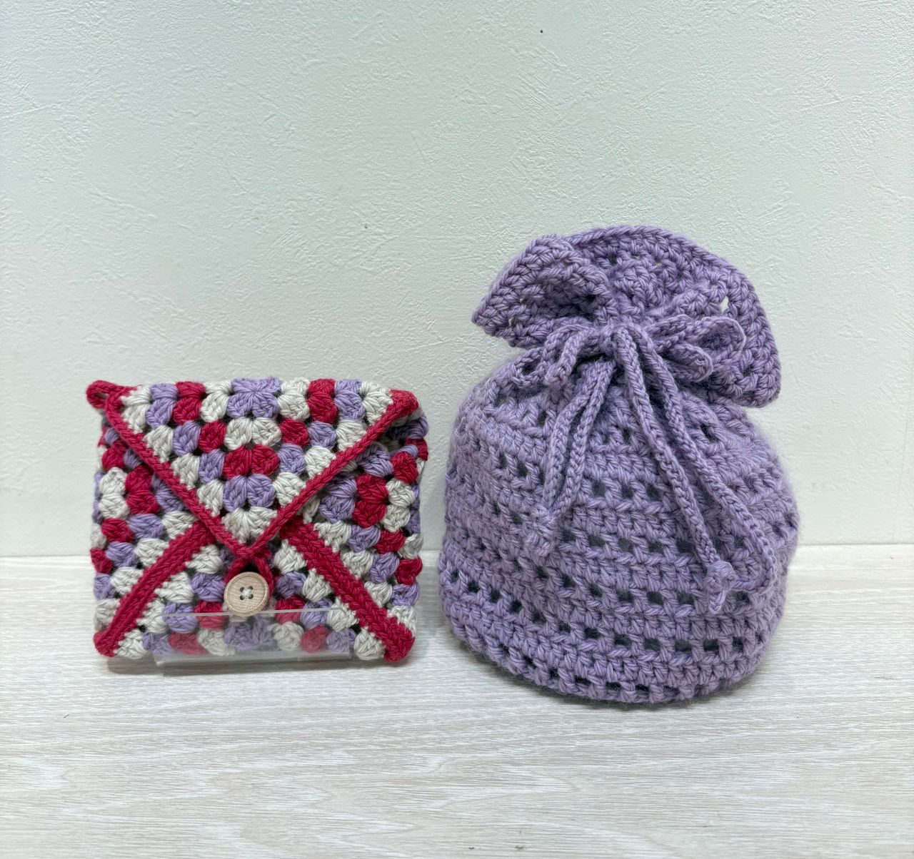 並太程度の太さは汎用性があり、セーターやベストなどのウェアから帽子やマフラー、手袋、バッグなどのこもの作りにもおすすめです☆