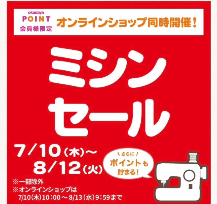オカダヤポイント会員様限定で、対象のミシンがメーカー希望小売価格より30%~70%OFF(一部除外あり)となります!