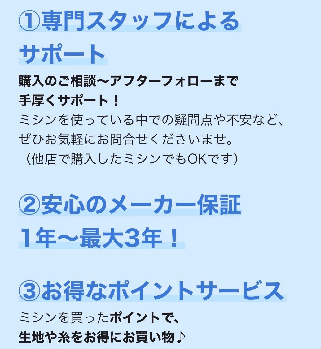 11月30日10時から18時まではミシンの専任スタッフがおります