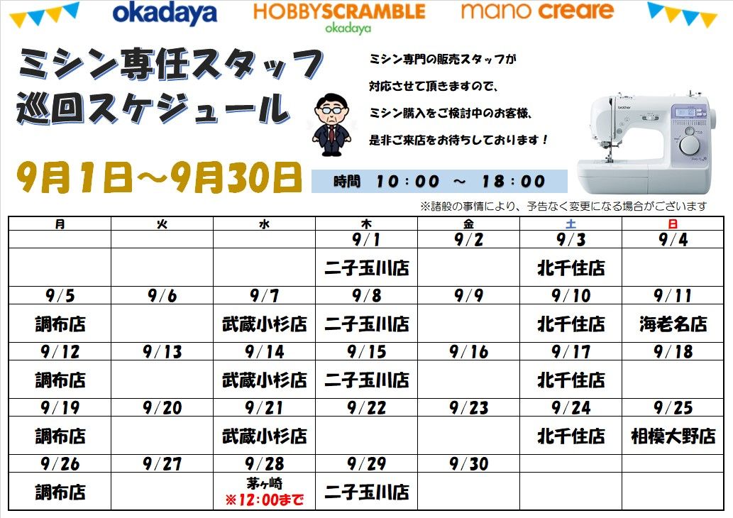ミシン専任の販売スタッフが店舗を巡回しております。