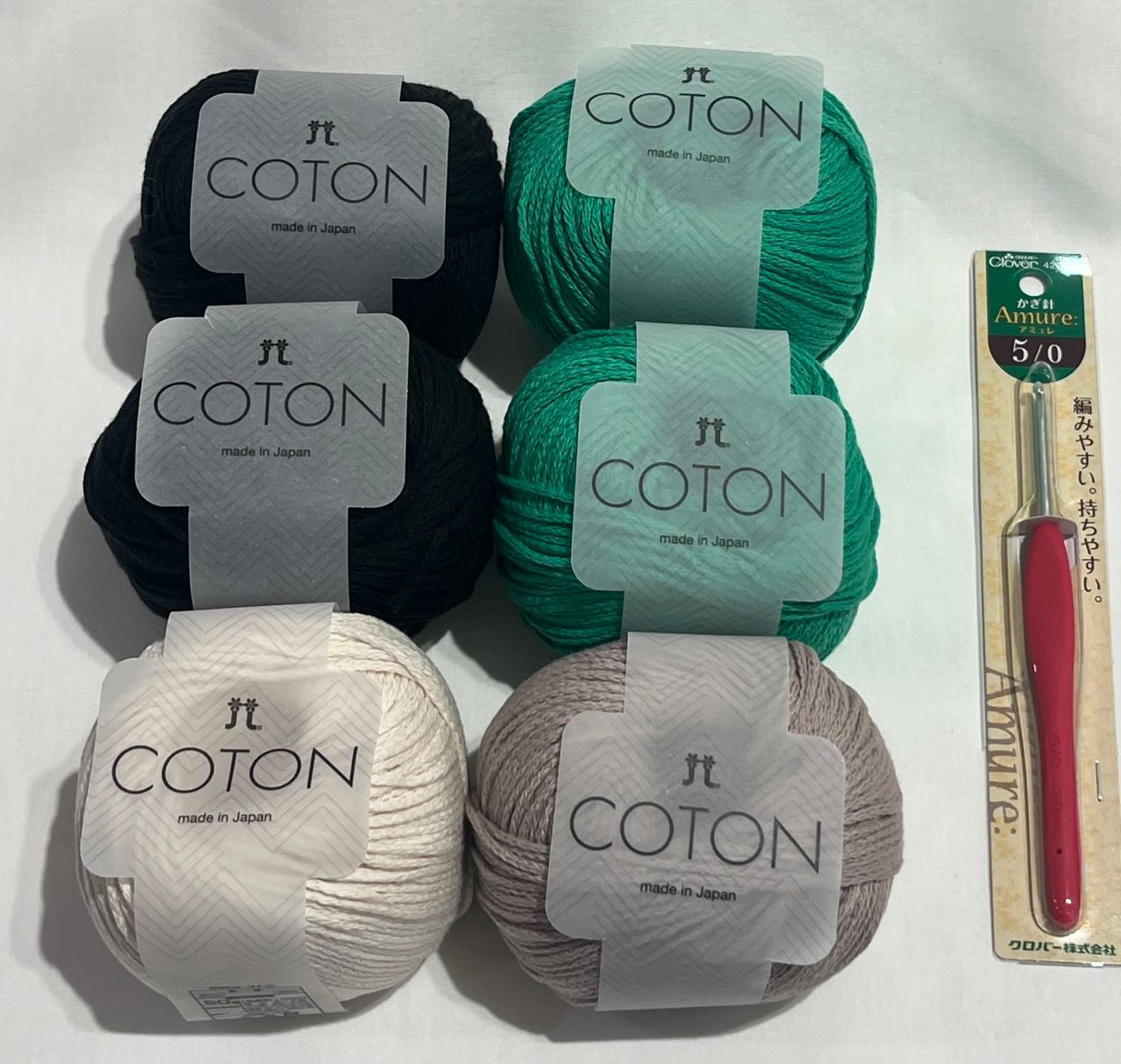 “コトン”は並太タイプのコットン100%のリリヤン糸で、糸割れしづらくとても編みやすい糸です