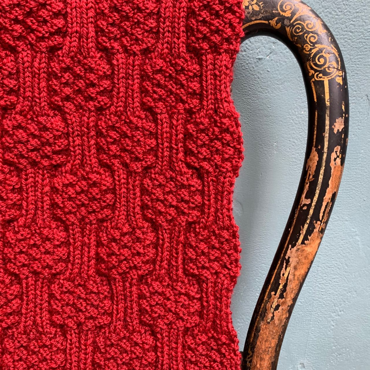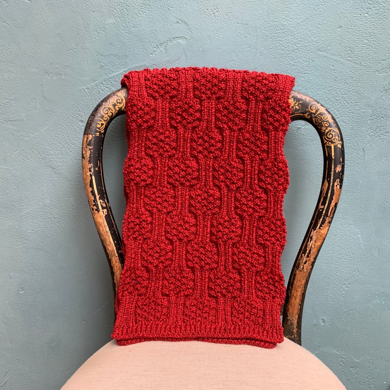 もう1点は地模様がお洒落な模様編みマフラー。