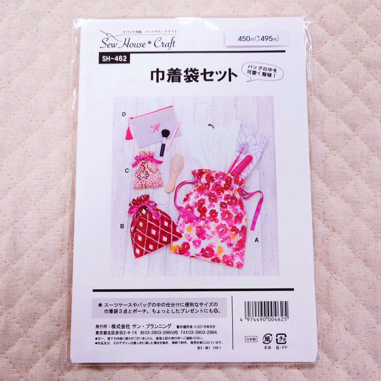 ひとつのパターンで巾着袋3点とポーチが作れます!