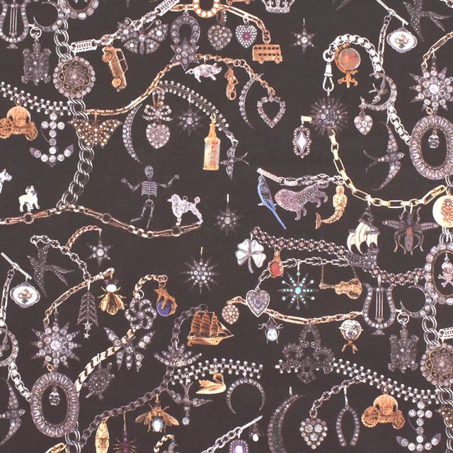 アンティークなチャームが、鎖に繋がって並んでいます。
