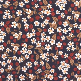 落ち着いた色味の中に、白い花と木の実が秋らしい柄です。