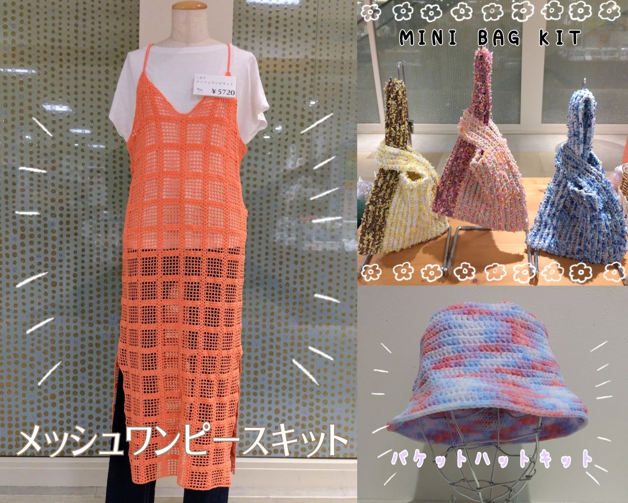 バケットハットキット・MINI BAG KIT〜メッシュワンピースキット等の小物からウェアまで色々なアイテムを取り揃えて皆様のご来店をお待ちしております。